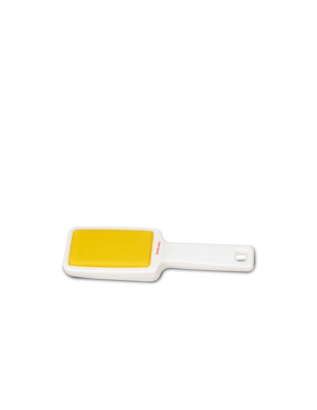 Spazzola in nylon bianco semirigido con manico per smacchiare tutti i tessuti.